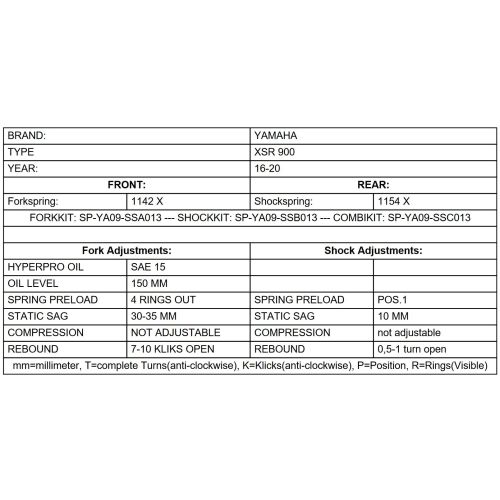 BLACK-T progressive replacement springs for Yamaha XSR 900 2016 - 2020