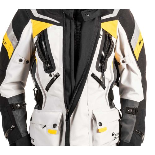 • Extra-long zips on the legs, enabling them to be worn on the outside of adventure bike boots