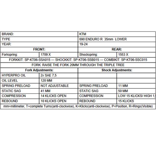 Height lowering kit -35 mm for KTM 690 Enduro R (2019-) *replacement springs*