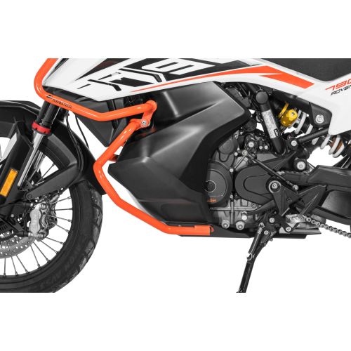 The result is a clever 3-part construction. This simplifies mounting and saves unnecessary additional weight. The resulting full 360° protection ensures that even in the toughest off-road conditions the engine, the exhaust system and the critical areas of the tank are protected. Flying stones and ground contact can do very little damage to your KTM 790.