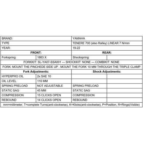 Fork springs LINEAR (7N/mm) for Yamaha 700 Tenere from 2019 *Adventure Set Up*.
