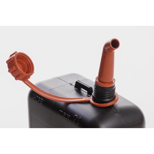 Fuel cans STANDARD 2 L, black, HD-PE, with red accessories for petrol, diesel and other hazardous goods For small appliances such as saws and for applications with small openings.