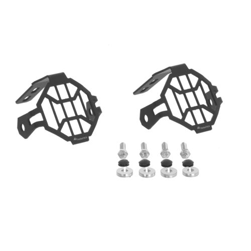 Headlight protector for original BMW LED fog headlight, anodised aluminium, black (-2017) *OFFROAD USE ONLY*