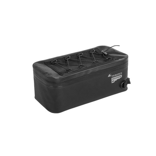 This waterproof pannier lid bag can be mounted on all Touratech panniers, all BMW panniers and most other original panniers with attachment eyes. With a capacity of 10 litres, it is the perfect addition to the Touratech ZEGA pannier system. On the top flap and on the weather-protected inside of the top flap, there are mesh pockets that hold small items.