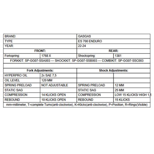 For all suspension solutions, the rear and front sections of the motorcycle should be adapted. The matching components for the rear of the GASGAS ES 700 Enduro can be found in our accessories list. Replacing just one component will not achieve optimal handling.