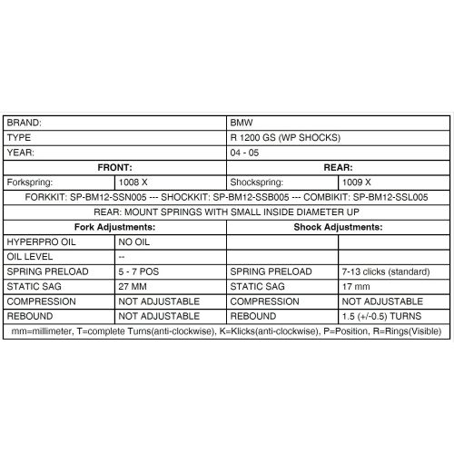 This set of progressive replacement springs has been designed to match the BMW R1200GS  perfectly, and offers a "tremendous improvement" in response and greater safety in extreme situations. Replacing the front and rear springs will lead to a significant improvement and more riding pleasure with your motorbike.