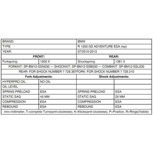 Info: Only fits * BMW R1200GS 2010-2013 with WP Original BMW ADV ESA shocks *
